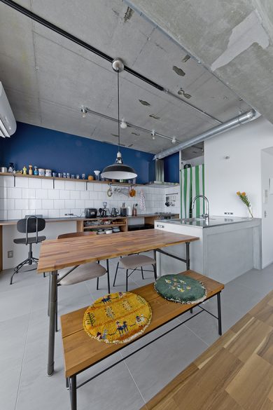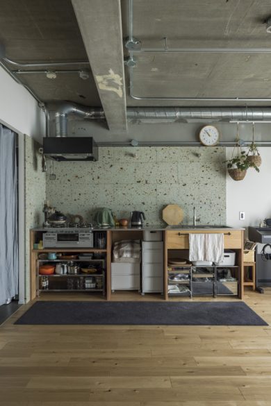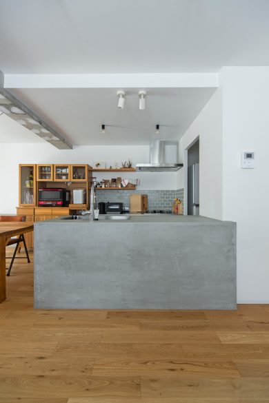 例えば、キッチン天板をモルタル仕上げにしたい場合や、使いたい古材がある、タイルを貼りたいといった場合は、キッチンメーカーで製作することが難しいことがあります。