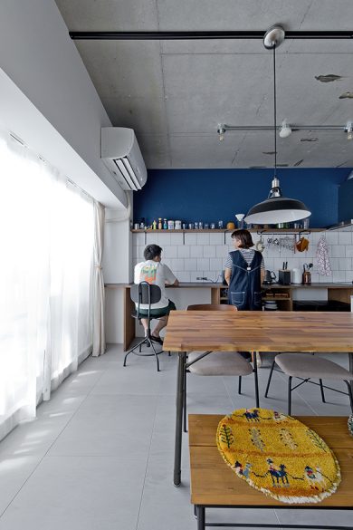 椅子やスツールと合わせて簡易的なダイニングのように使えるため、LDKの動線がスムーズになり、暮らし方も豊かになります。