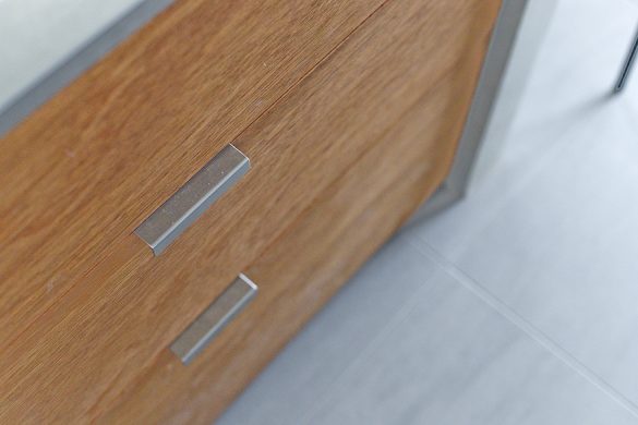 メーカー既製の取手は機能性や耐久性は十分ですが、デザインが画一的になりがち。扉材の色や質感をこだわっても、取手がしっくりこないだけで、納得のゆくキッチンにならないのです。