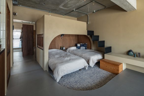 また、こちらの物件は実は天井高さが低めでしたが、天井をコンクリート仕上げ、ロフト下の床を下げることで、天井高さをしっかり確保。