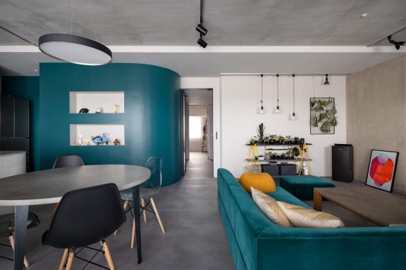 リビングでは大型の収納家具を置かなくても、壁の一部にニッチがあるだけで、空間に奥行きが生まれます。
