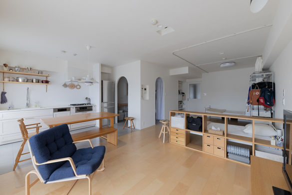 こうした自由度を確保するため、リノベーションでは作り付けの棚などはあえて最小限にとどめました。